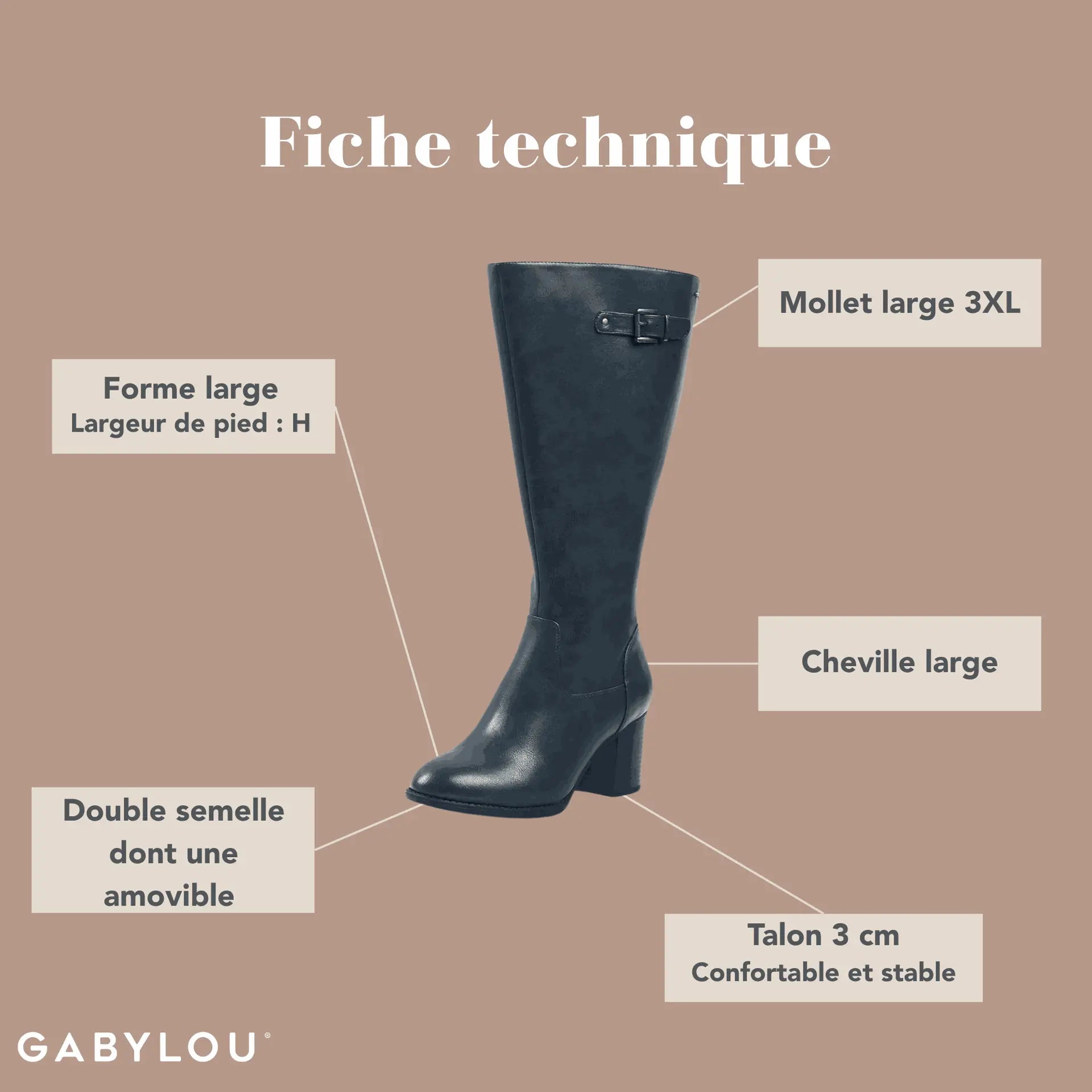 Bottes 3XL pour mollets larges - Modele Romy