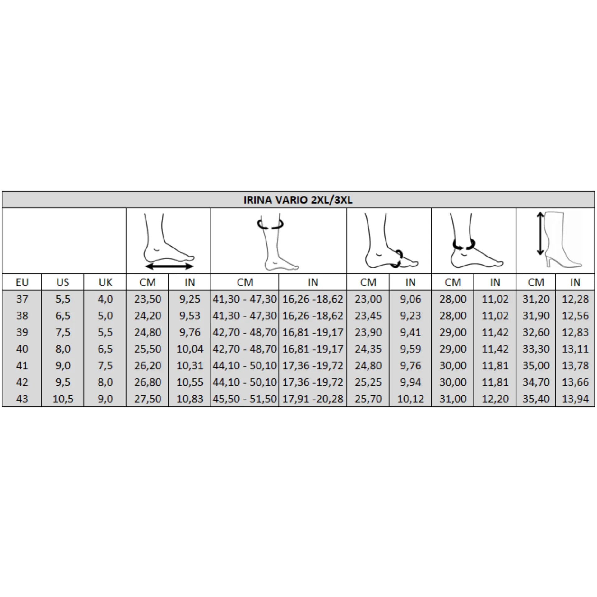 Pied large : Tour de mollet : 2XL