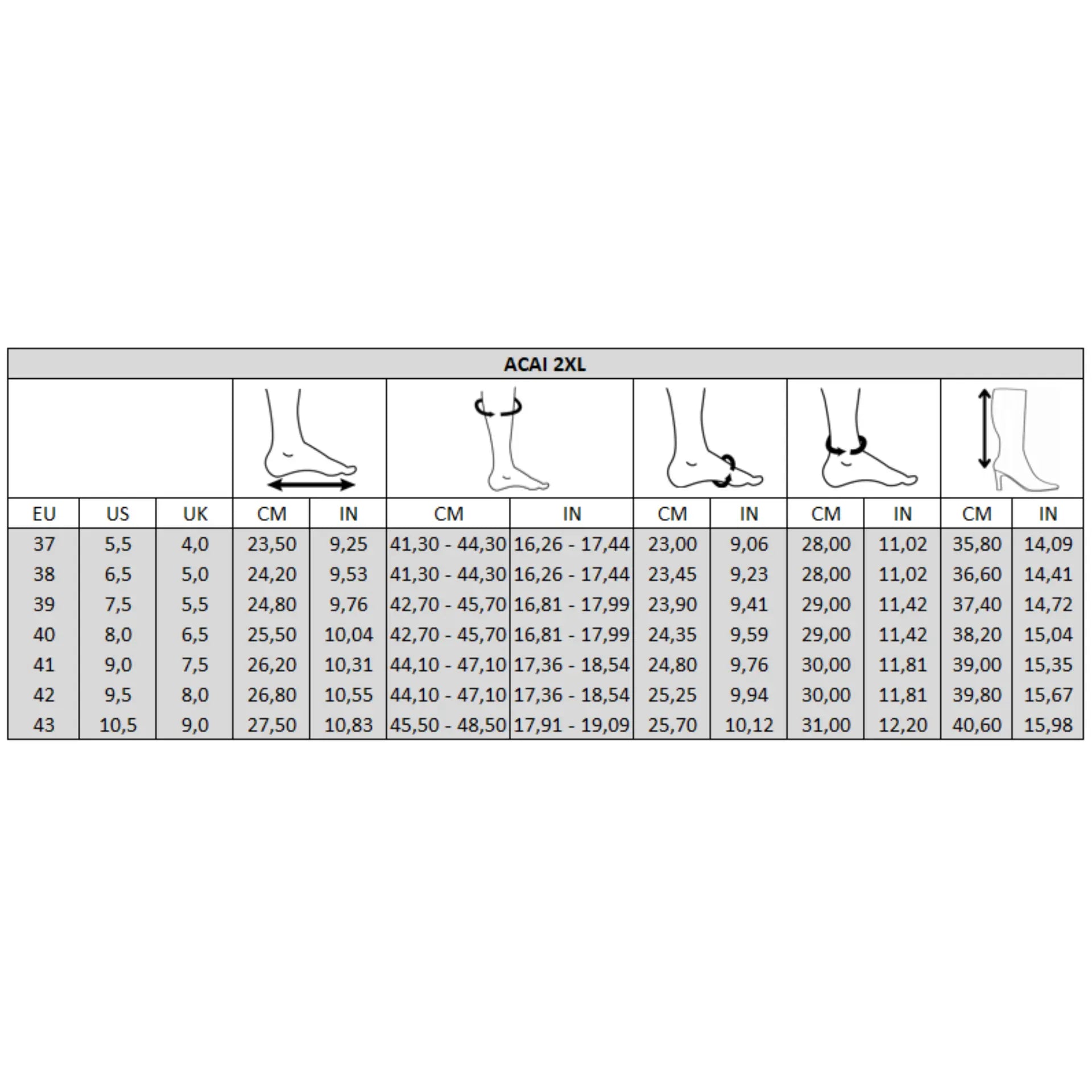 Les bottes ACAI offrent un style élégant et un confort adapté au quotidien. Conçues en PU. elles conviennent aux pieds larges et présentent une largeur de mollet 2XL. Leur talon de 5.5 cm ajoute une touche féminine tout en restant confortable. et la double semelle amovible permet un ajustement sur mesure. Fermeture zippée sur toute la longueur. Disponibles en noir ou marron. du 37 au 43.