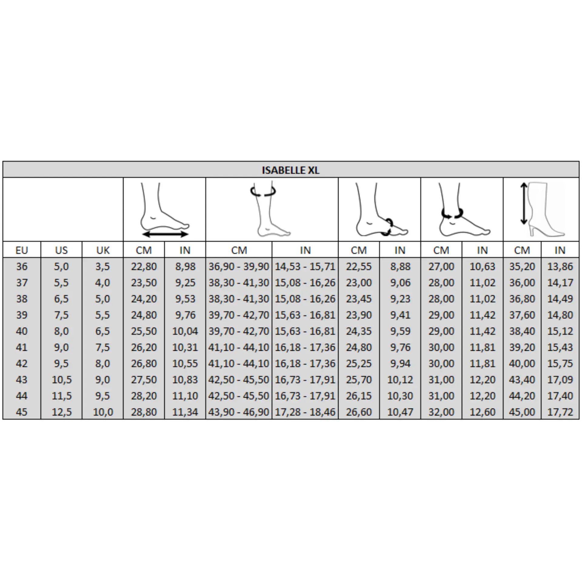 • Largeur de mollet : XL