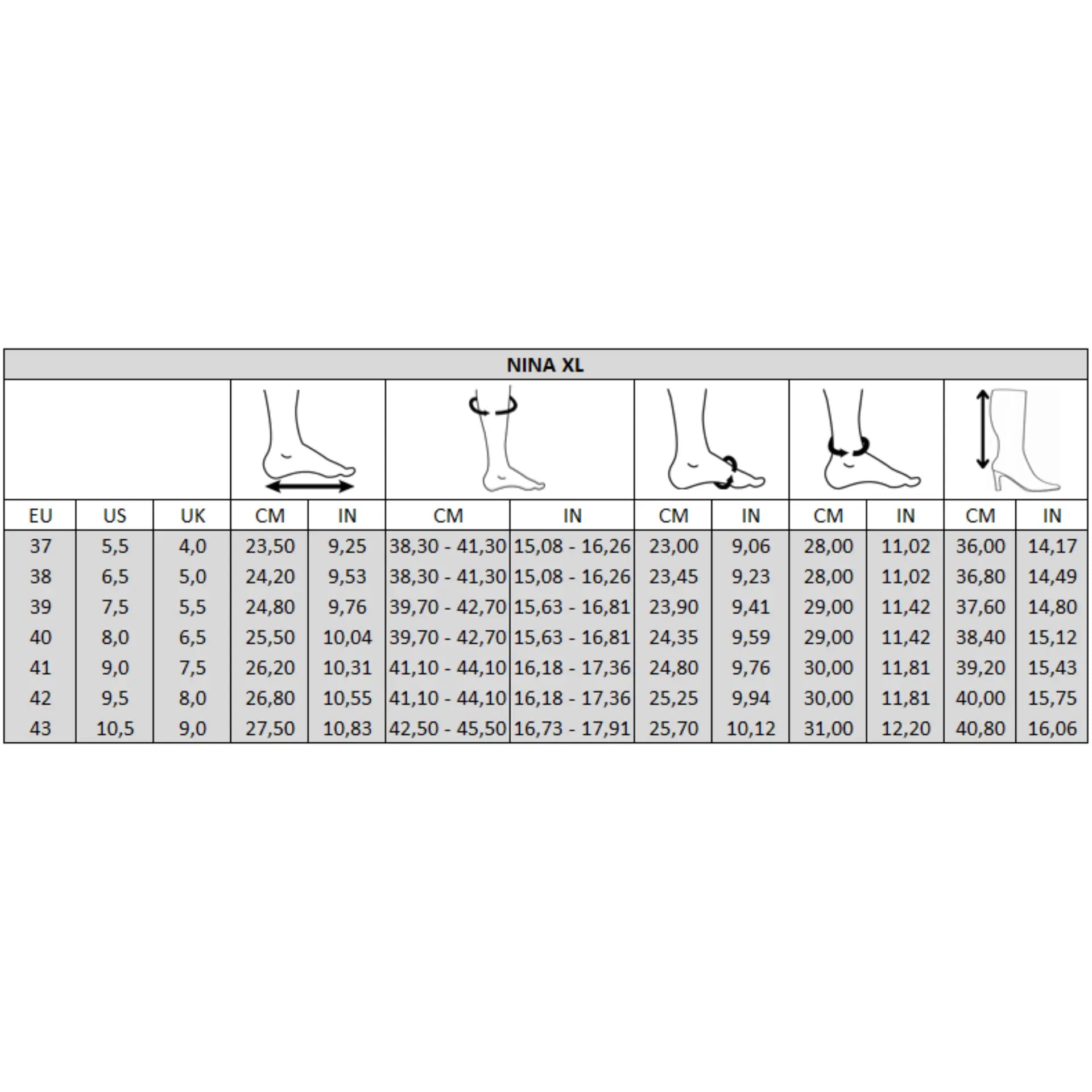 Avec leur talon stable et élégant, elles allongent la silhouette tout en restant confortables. Disponibles en grandes pointures, les bottes Nina sont idéales pour les femmes recherchant des bottes élégantes parfaitement adaptées aux pieds et mollets larges.