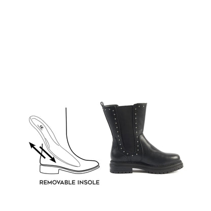 Les bottines noires ne se démoderont jamais. Elles sont un classique intemporel capable d'ajouter une touche d'élégance simple et chic à n'importe quelle tenue. Notre modèle JADE. avec son design sobre et son talon plat. incarne parfaitement cette polyvalence.