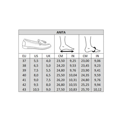 Les mocassins Anita en cuir souple sont spécialement conçus pour les pieds larges (largeur H). Faciles à enfiler, avec semelle amovible et semelle flexible, ils offrent confort, maintien et légèreté tout au long de la journée. Disponibles en grandes pointures, ces mocassins allient élégance et confort pour les femmes aux pieds larges. Fabriqués en Europe.