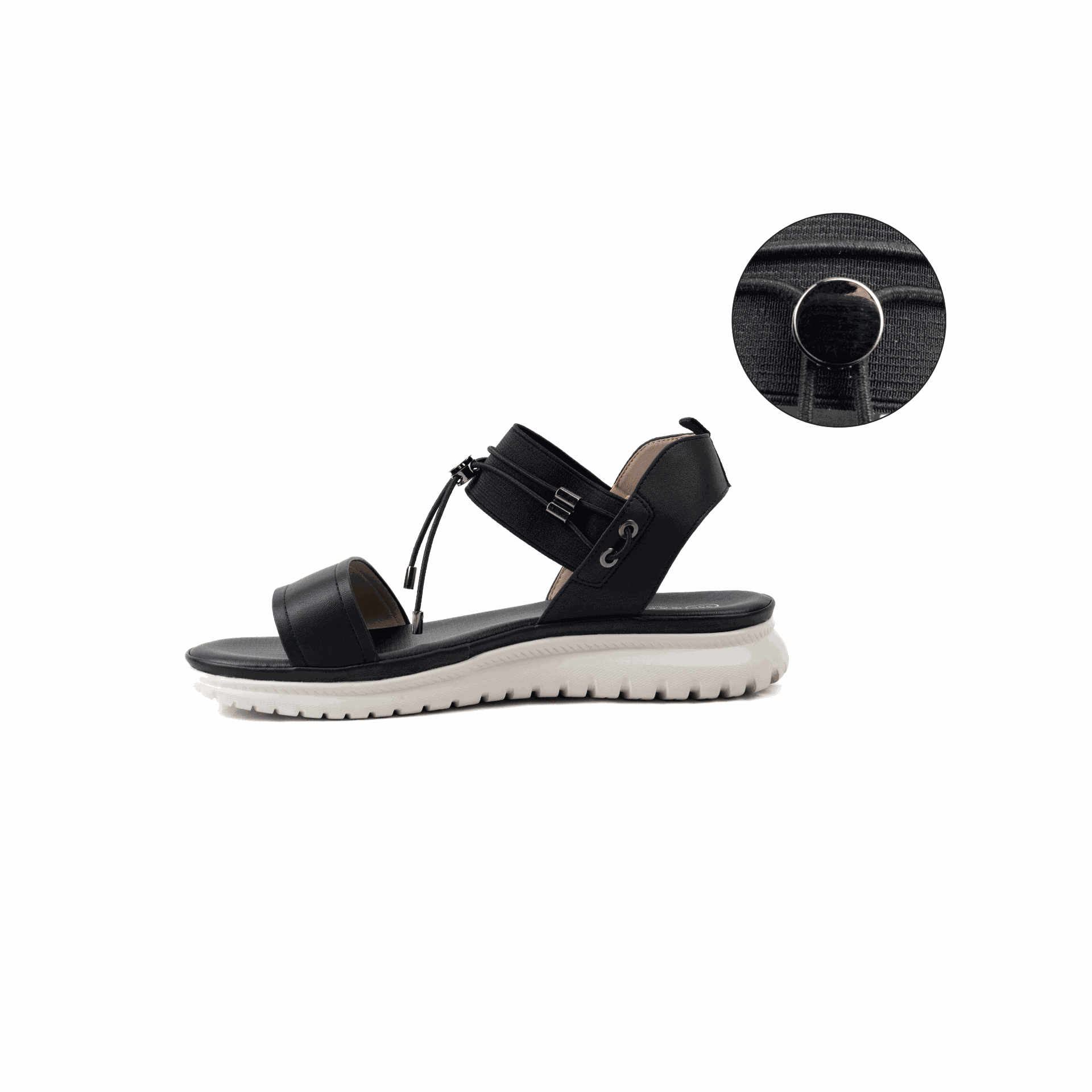 • - Lanière de la cheville élastiquée, permet de gagner quelques centimètres d’aisance et facile à enfiler + élastique avec détails métalliques ajustable