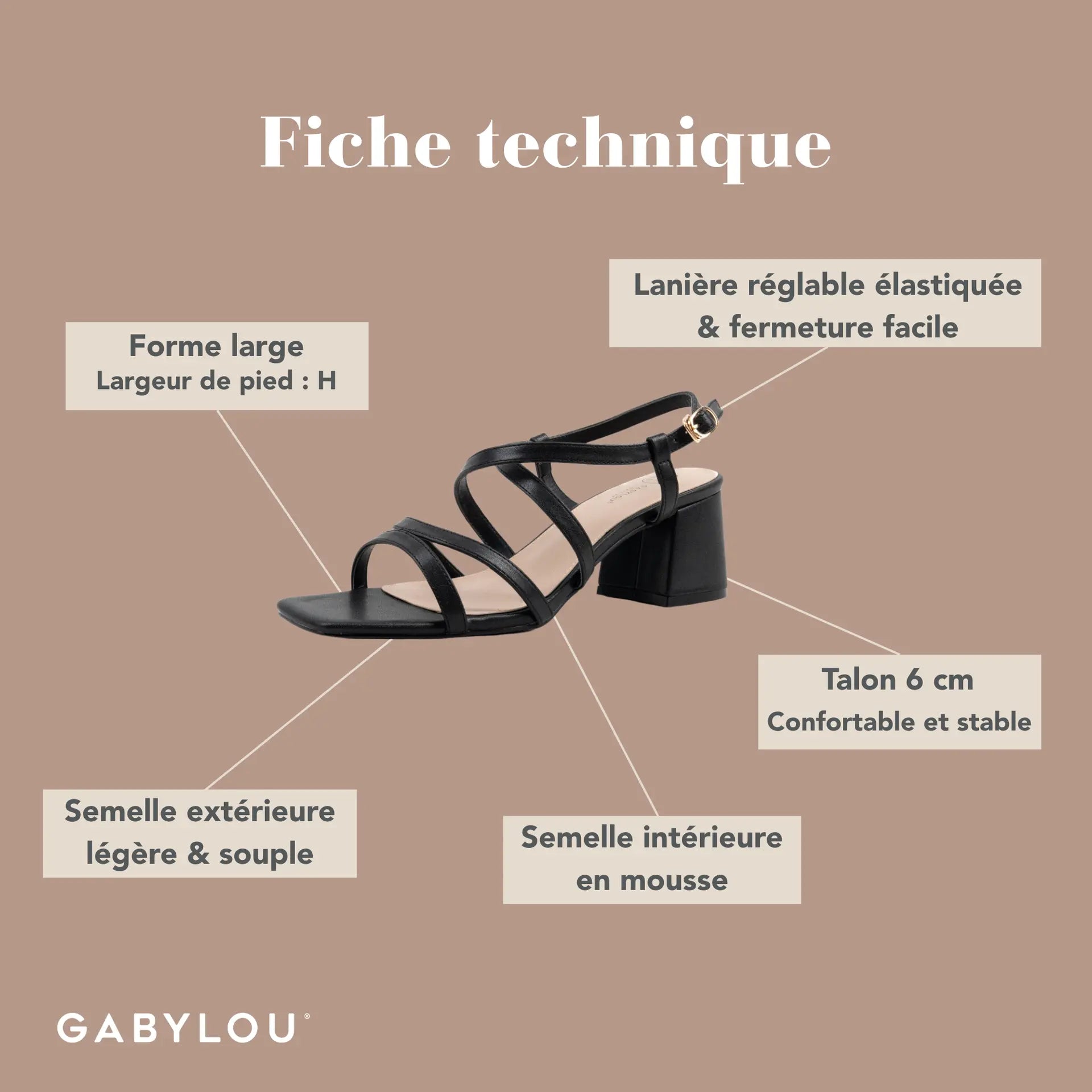 • Hauteur du talon : 6 cm