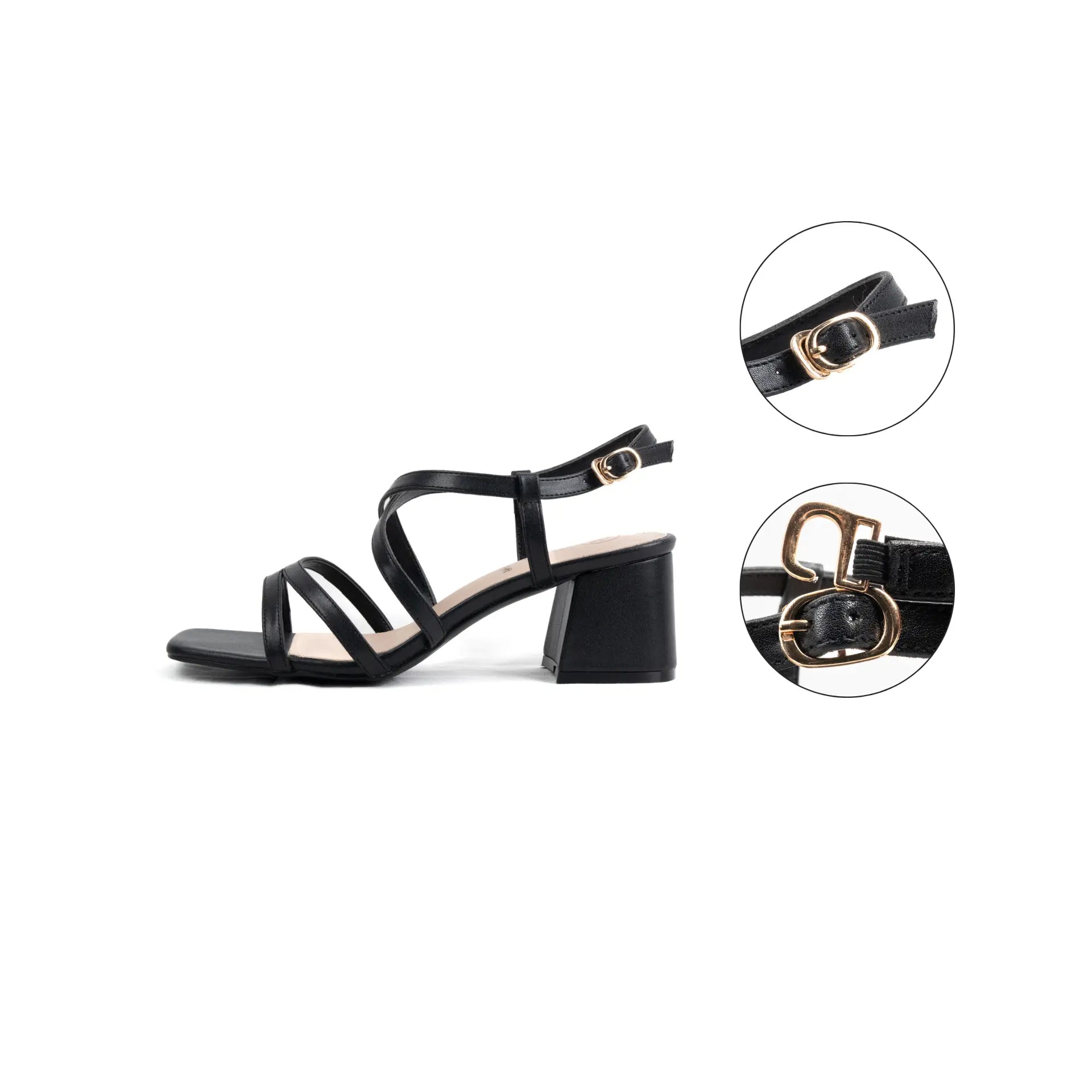 • Bride cheville : apporte un confort supplémentaire et se glisse facilement grâce à ses détails métalliques ajustables.
