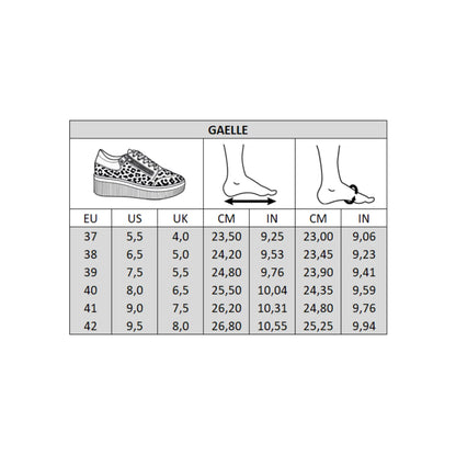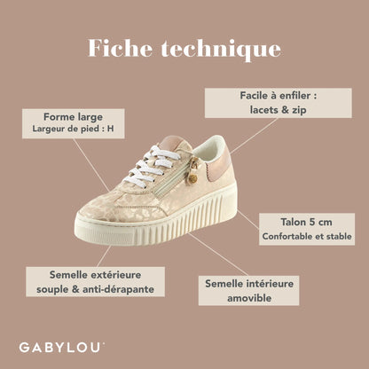 Découvrez les sneakers pour pieds larges en cuir Gaelle. Largeur de pied H. Disponibles de la pointure 37 à 42 en couleur Léopard Rose Gold. Conçues pour allier confort et style. Idéales pour un usage quotidien. Made in Europe