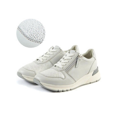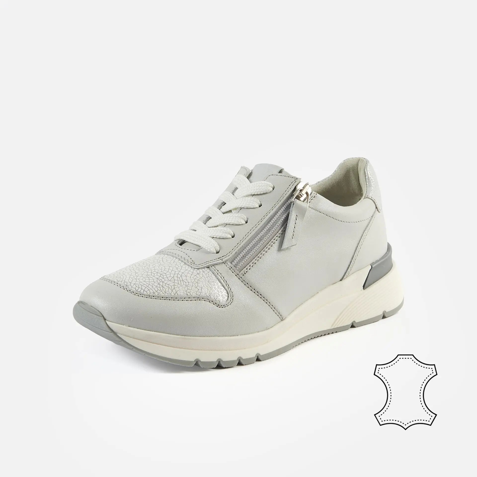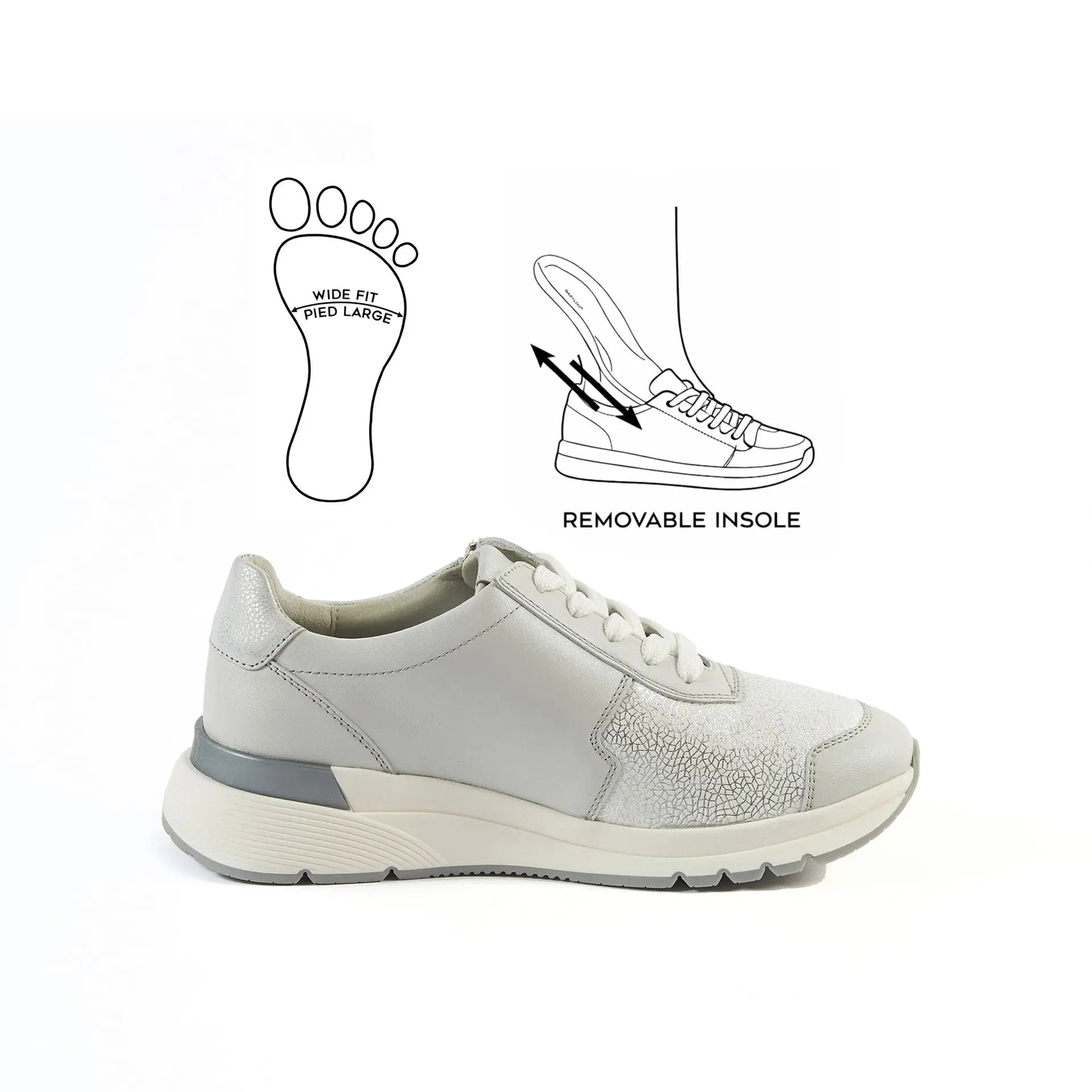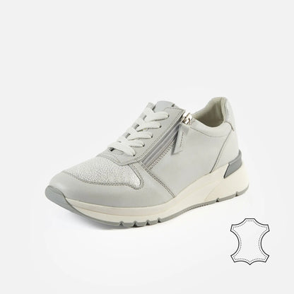 Découvrez les sneakers pour pieds larges en cuir Cléa. Largeur de pied K. Disponibles de la pointure 37 à 42 en couleur Or et Gris clair. Conçues pour allier confort et style. Idéales pour un usage quotidien. Made in Europe